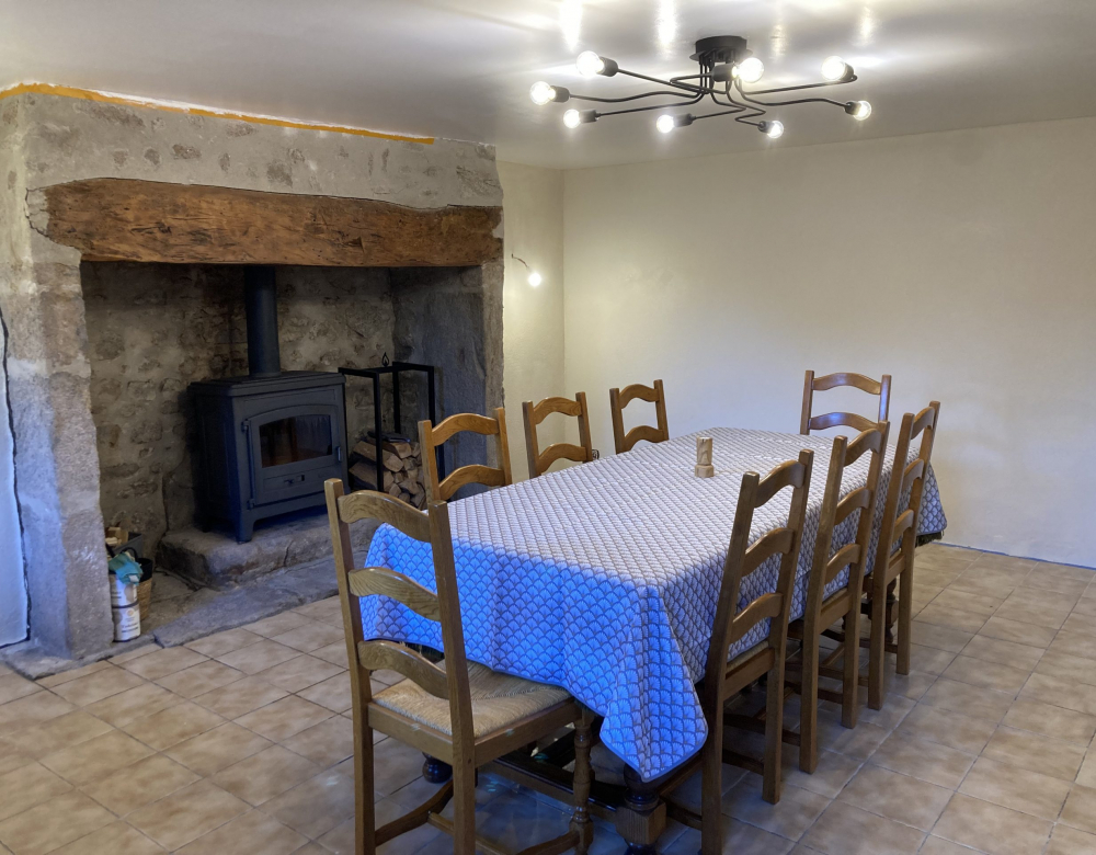 La porte d’entrée s’ouvre sur un grand séjour avec un bar, une grande table (8 personnes), un cantou (poêle à bois), une chaine hifi et une télévision. Sur la droite, une cuisine ouverte, réaménagée récemment est équipée de plaques de cuisson à gaz, d’un four, d’un grand frigo (370 litres), d’un lave-vaisselle et d’un micro-onde. Vous y trouverez aussi une cafetière ainsi qu’une machine à café expresso « Dolce Gusto », un grille-pain et une bouilloire. Pour vos soirées, un appareil à raclette avec pierrade (8 personnes) et une grande plancha de table (10 personnes) sont mis à disposition.