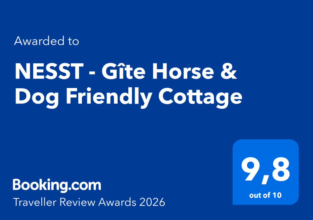 Nesst est un gite “Horse & Dog friendly” en Haute-Corrèze qui peut accueillir jusqu’à 8 personnes, 2 chevaux et plusieurs chiens. Le gîte a obtenu 3 truffes au label QualiDog en novembre 2025 et un “Traveller Review Award” de Booking.com en Février 2026.